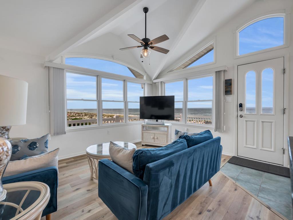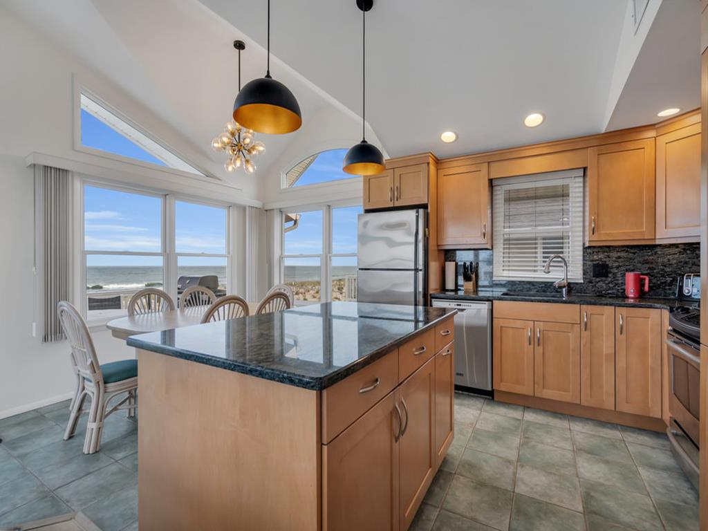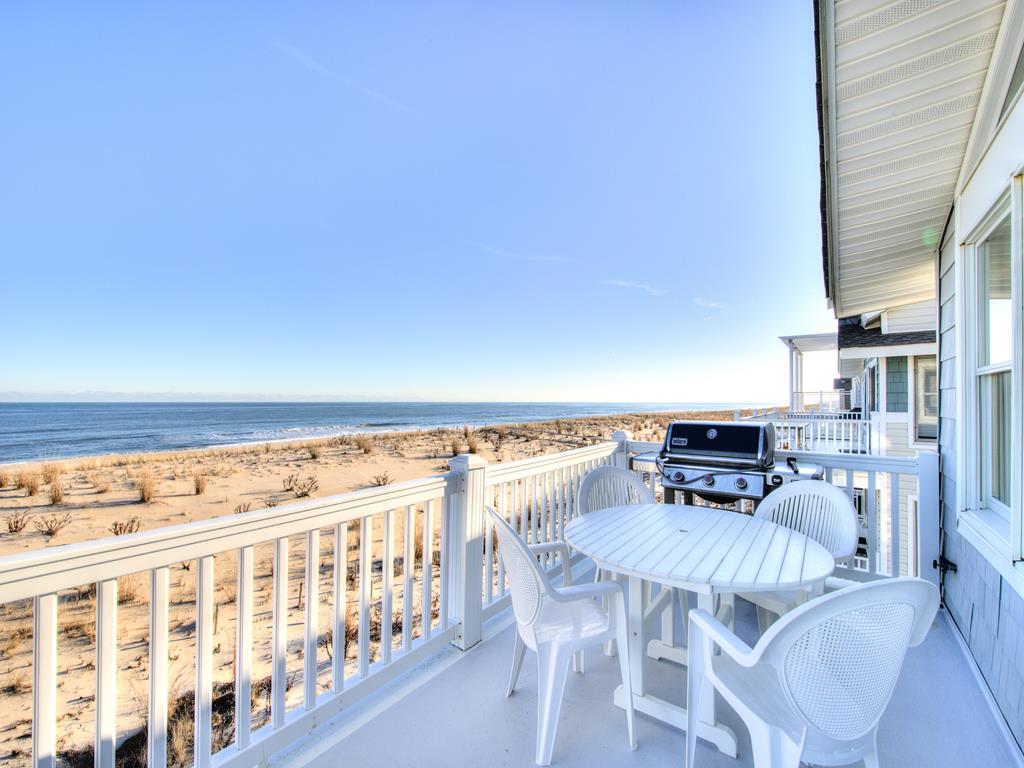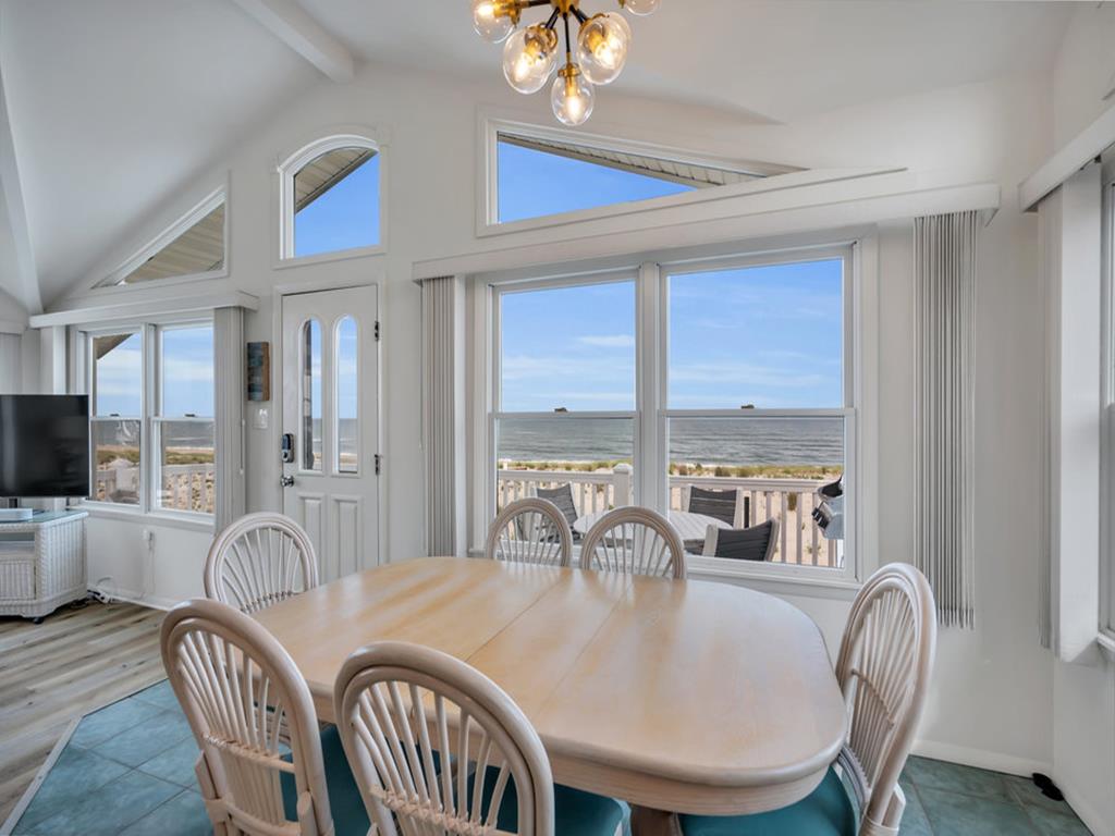 Recently renovated second floor of an ocean front duplex in Brant Beach. Upgrades include: carpet removed and new flooring, heating, cooling and electric. New living room furniture, light fixtures and dinnerware. 4 Beach badges provided by owner but not guaranteed. Property has both Traditional Drip and Keurig Coffee makers. Parking for 2 cars in the driveway. Please do not park in garage #2, it is for storage only and is shared with the first floor.