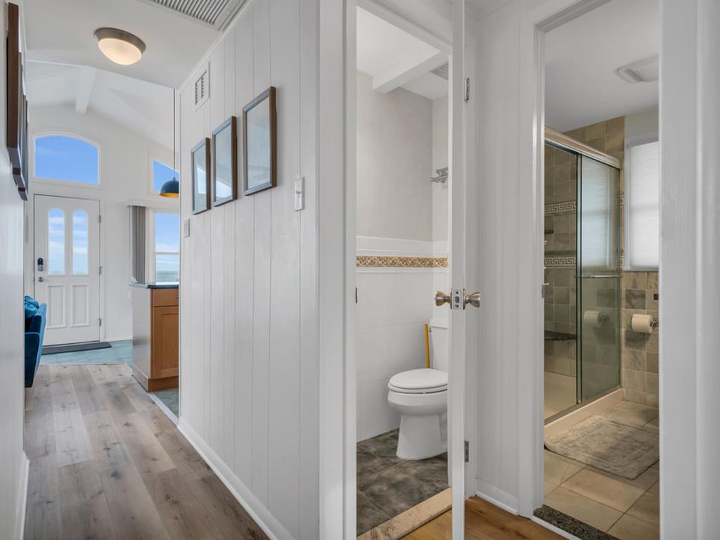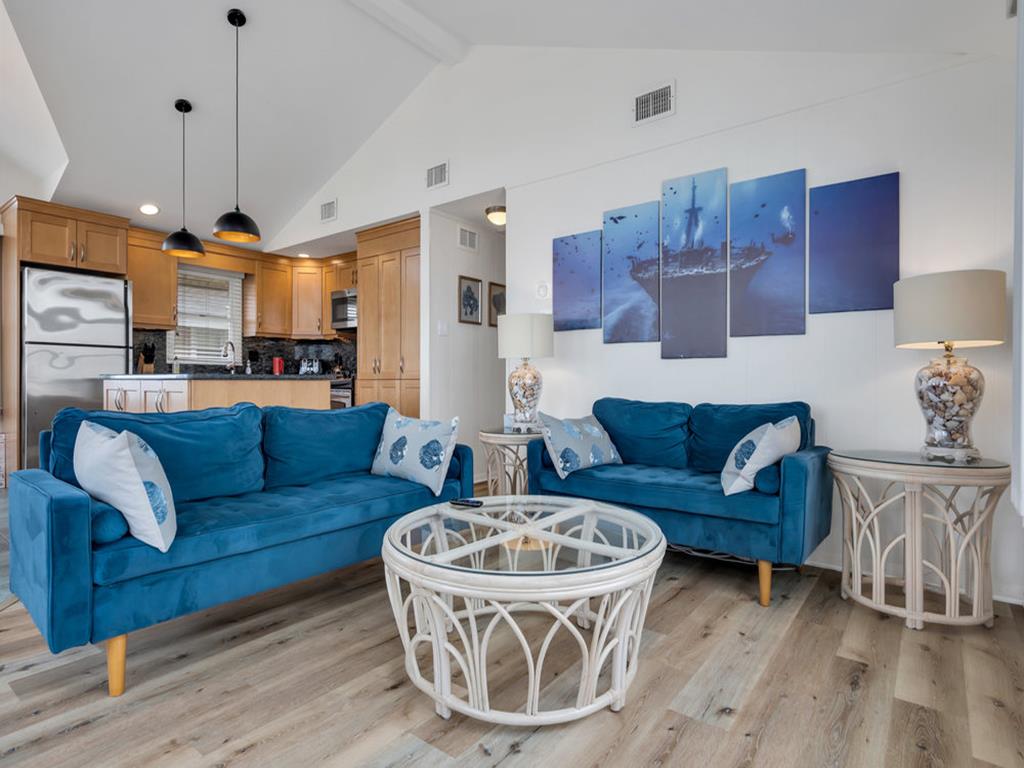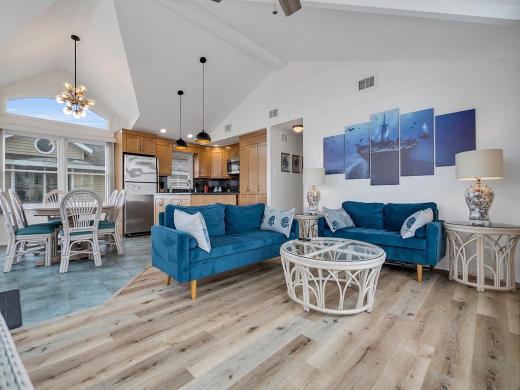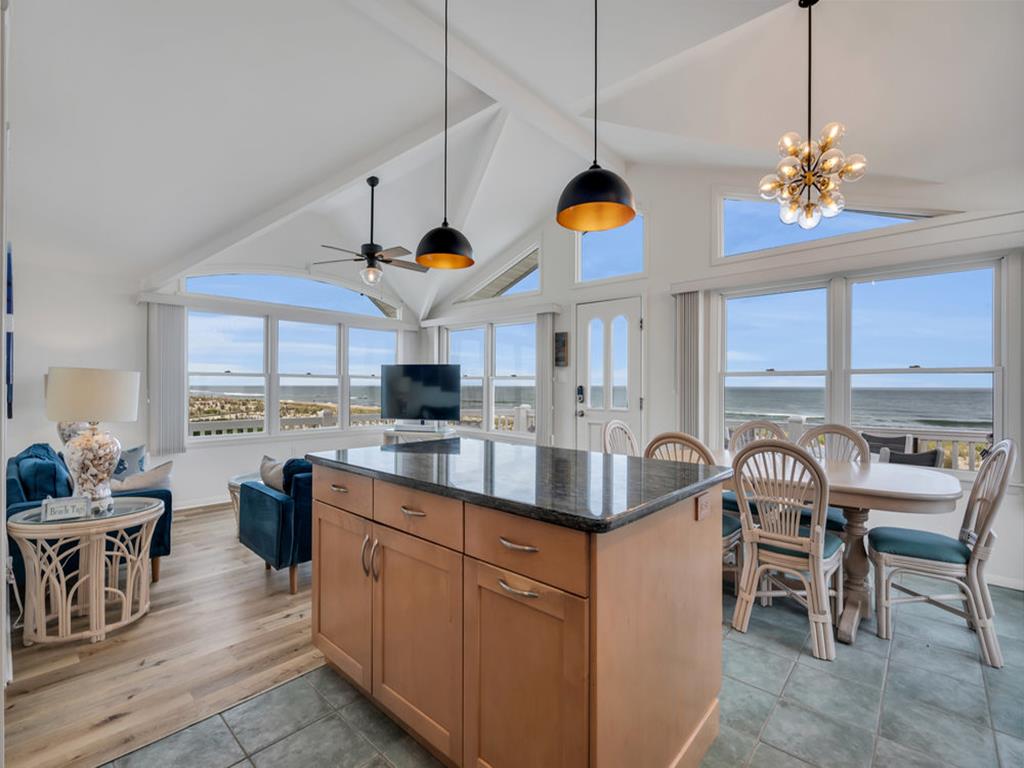 Recently renovated second floor of an ocean front duplex in Brant Beach. Upgrades include: carpet removed and new flooring, heating, cooling and electric. New living room furniture, light fixtures and dinnerware. 4 Beach badges provided by owner but not guaranteed. Property has both Traditional Drip and Keurig Coffee makers. Parking for 2 cars in the driveway. Please do not park in garage #2, it is for storage only and is shared with the first floor.
