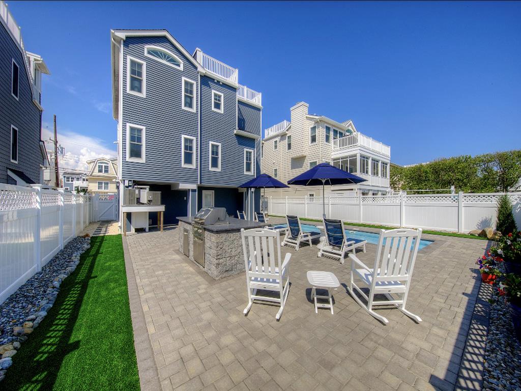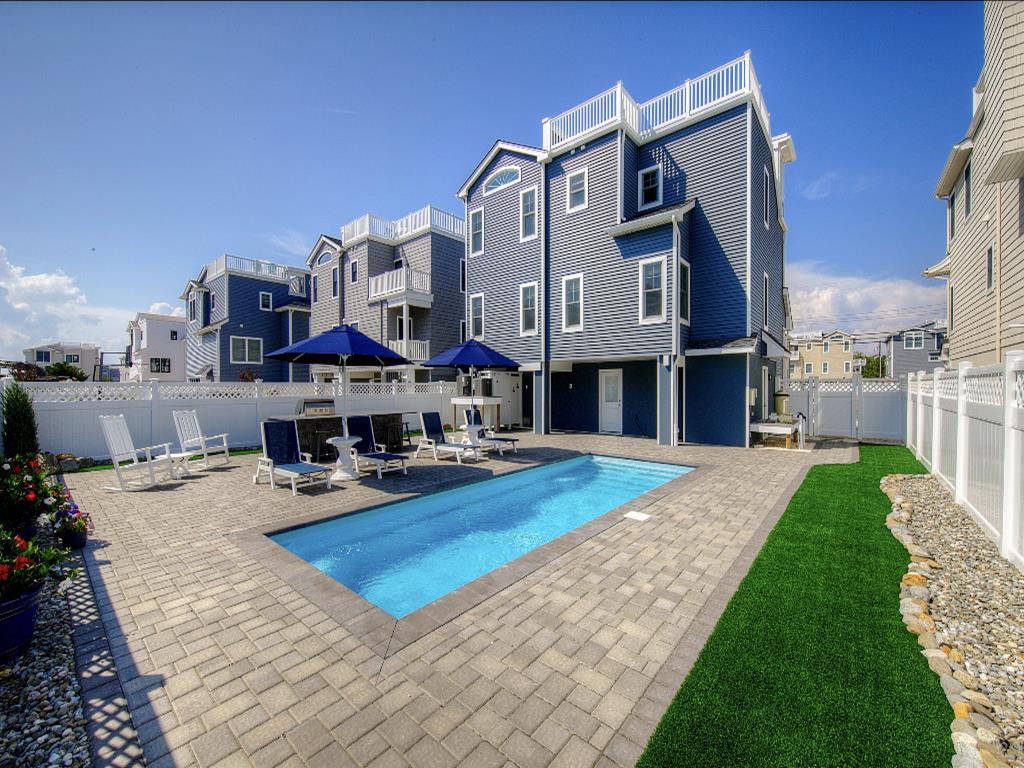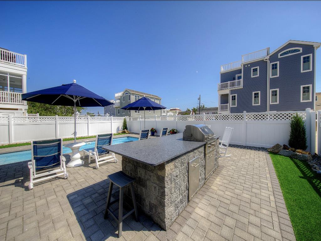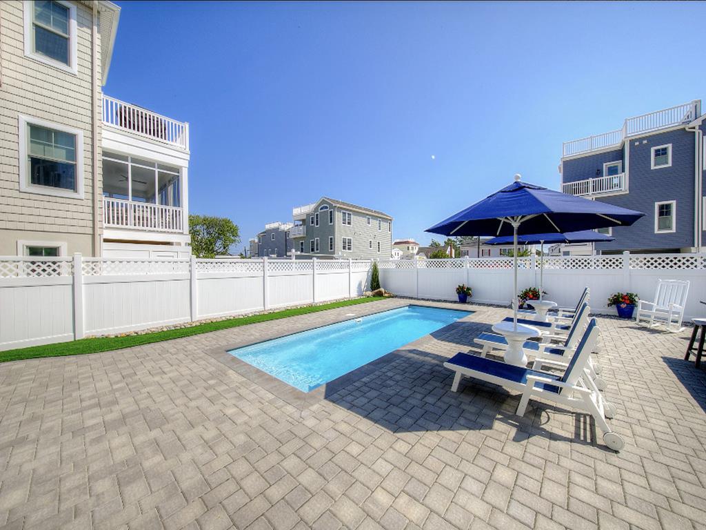 This spectacular, immaculate, reversed living 4 bedrooms, 3.5 baths contemporary home is located 6 houses to the beach in the serene Holgate Section of Long Beach Island. This home is beautifully decorated with contemporary furnishings and plank hardwood flooring throughout; top of the line appliances and quartz kitchen countertops. Enjoy the ocean views from the front decks and the rooftop deck that has outstanding views of the bay, ocean and Atlantic City Skyline, sunrises and sunsets. Enjoy the outside private oasis featuring an in-ground pool surrounded by hardscaping and an outdoor kitchen with a gas grill. Maximum overnight guests is 10. 8 Beach badges, 6 beach chairs, and 1 beach umbrella provided by owner as a courtesy but not guaranteed. Tenants are to bring their own sheets, towels and beach towels.
