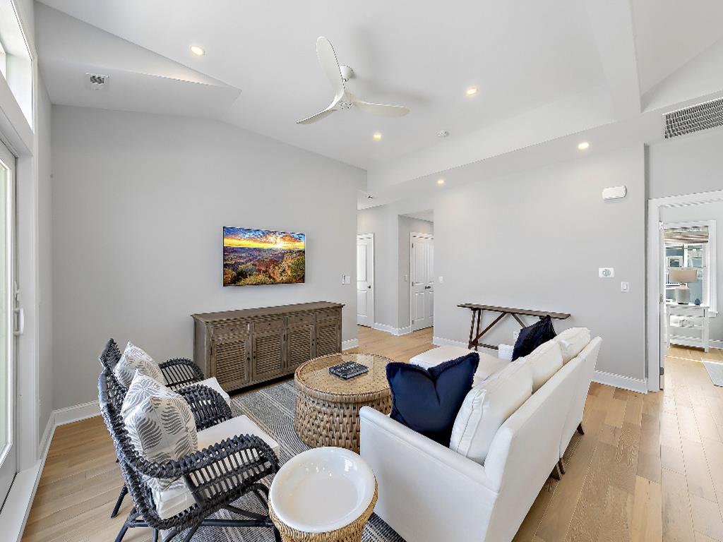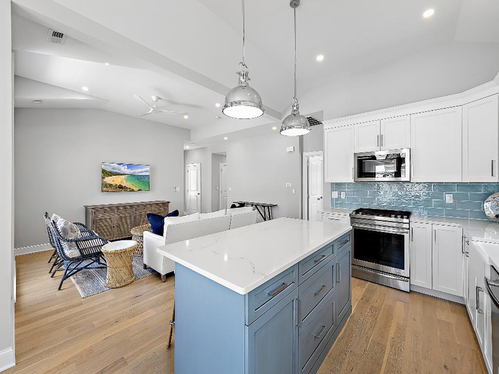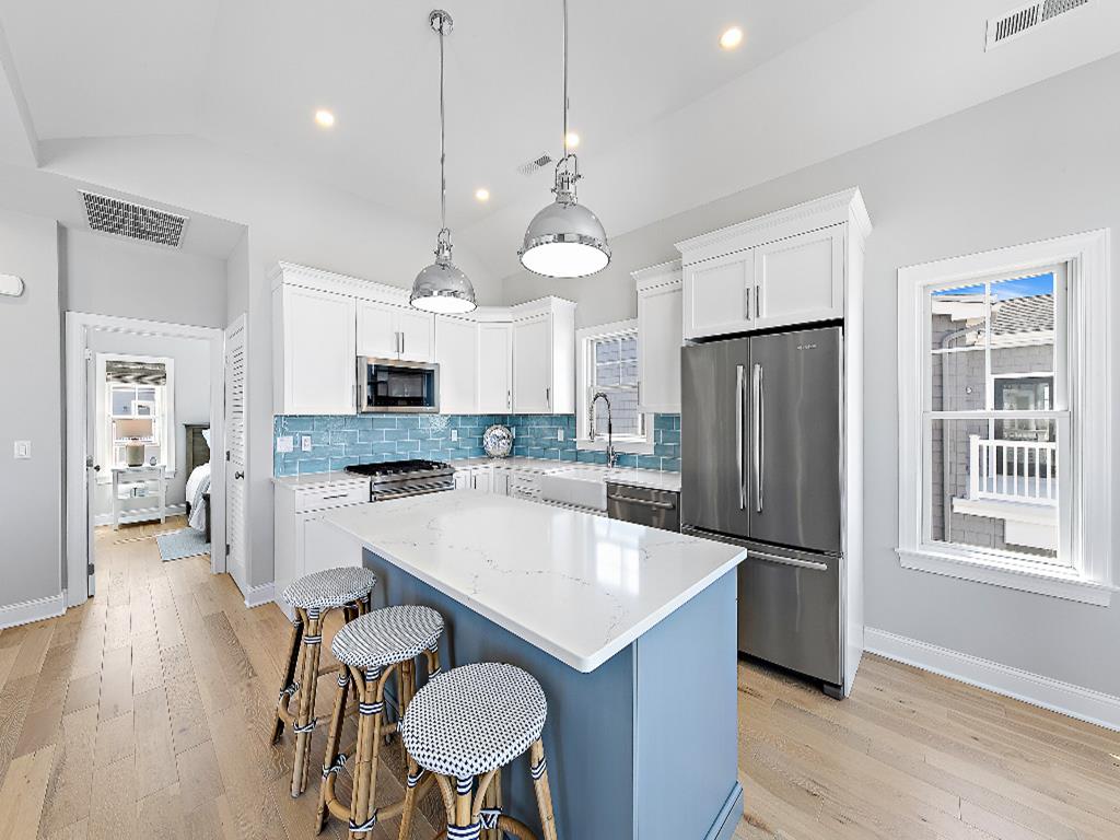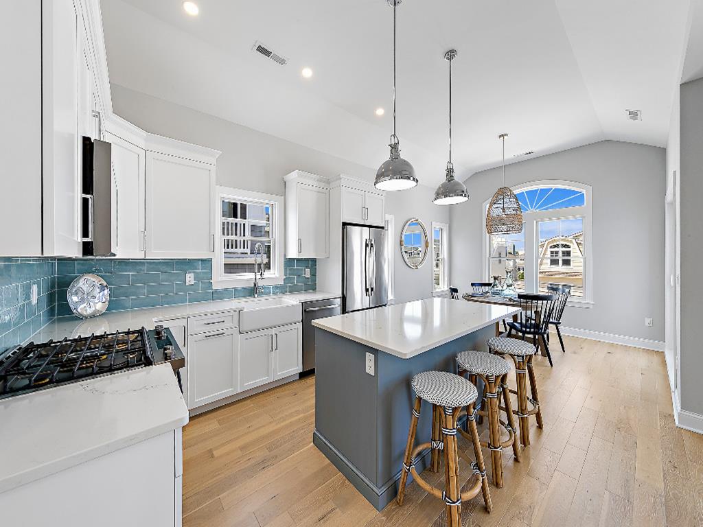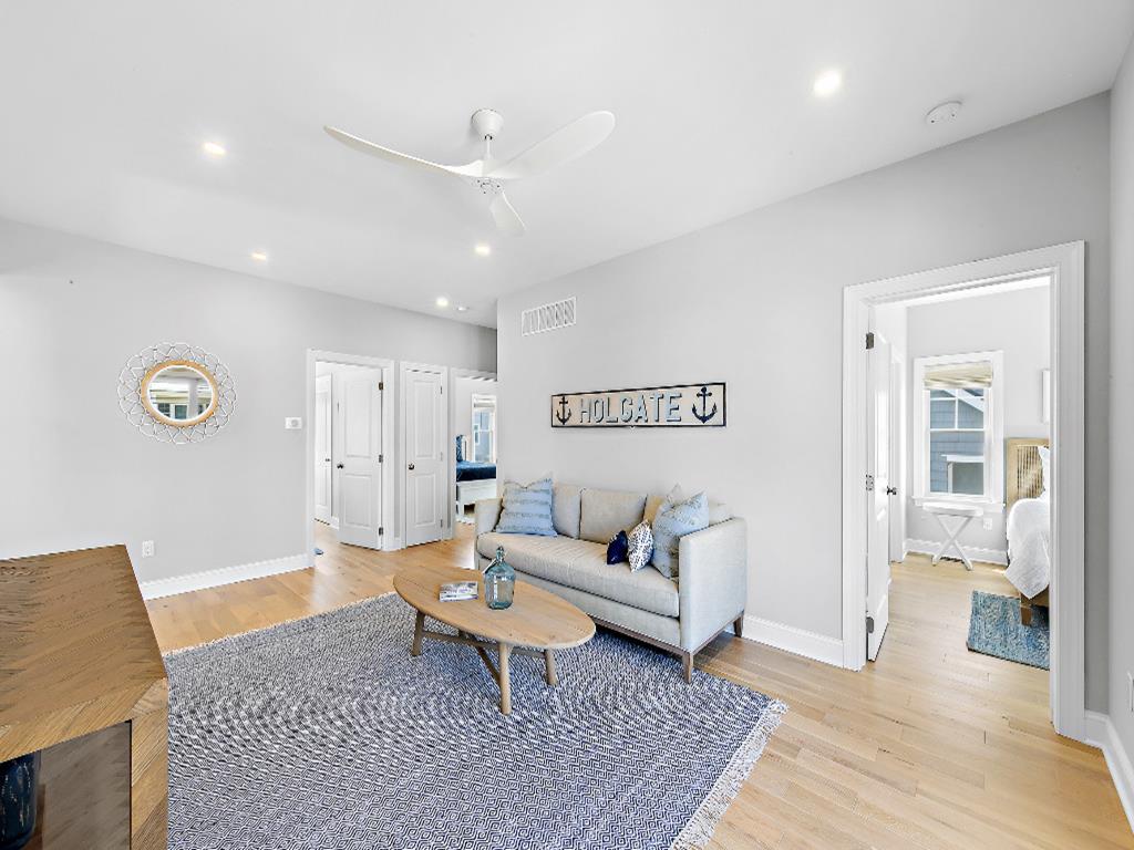This spectacular, immaculate, reversed living 4 bedrooms, 3.5 baths contemporary home is located 6 houses to the beach in the serene Holgate Section of Long Beach Island. This home is beautifully decorated with contemporary furnishings and plank hardwood flooring throughout; top of the line appliances and quartz kitchen countertops. Enjoy the ocean views from the front decks and the rooftop deck that has outstanding views of the bay, ocean and Atlantic City Skyline, sunrises and sunsets. Enjoy the outside private oasis featuring an in-ground pool surrounded by hardscaping and an outdoor kitchen with a gas grill. Maximum overnight guests is 10. 8 Beach badges, 6 beach chairs, and 1 beach umbrella provided by owner as a courtesy but not guaranteed. Tenants are to bring their own sheets, towels and beach towels.