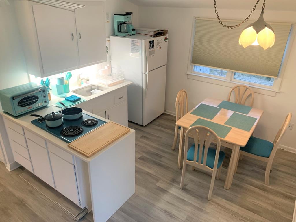 Summertime to RELAX at the 2nd house from the Ocean. Private and quiet cape duplex with substantial deck and partial view of the ocean. This two bedroom has an open kitchen and living room for easy entertaining. Pullout sofa in the living room accommodates an additional two guests. Laundry room is shared with downstairs unit. There are many great local restaurants and shops within walking distance. Vintage stove top, microwave and an outdoor grill for easy cooking (no oven provided). Parking for upstairs unit is in REAR of the house. Please see map to parking in photos. Updated paint, flooring and high hat lights in the living room plus a new washer / dryer. Gas grill and washer/dryer shared with 1st floor. Bring a small dog (up to 15 pounds max) with an additional $250 non-refundable pet fee. All dogs MUST be leashed on this property at all times. 4 beach badges supplied by owner but not guaranteed. The backyard has 2 picnic benches and some chairs.