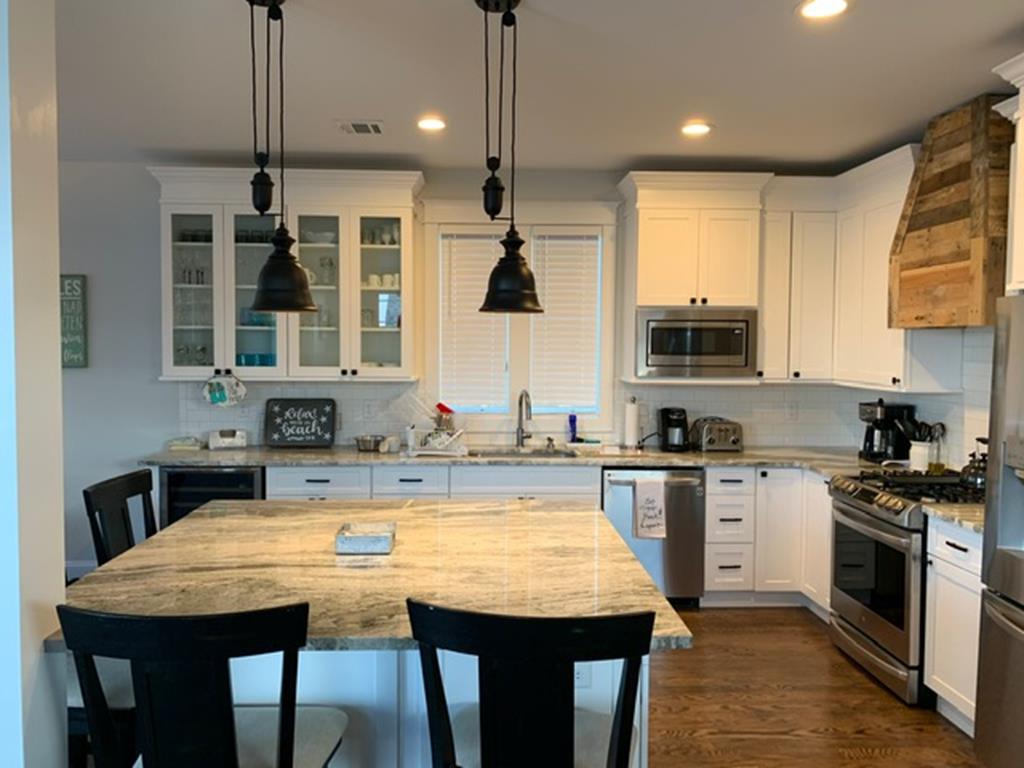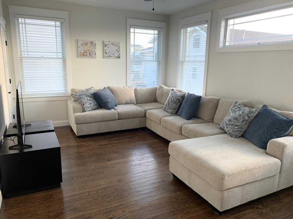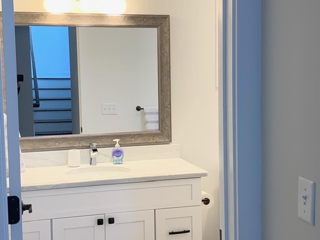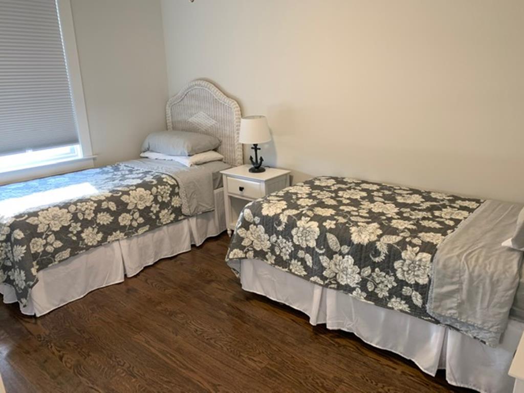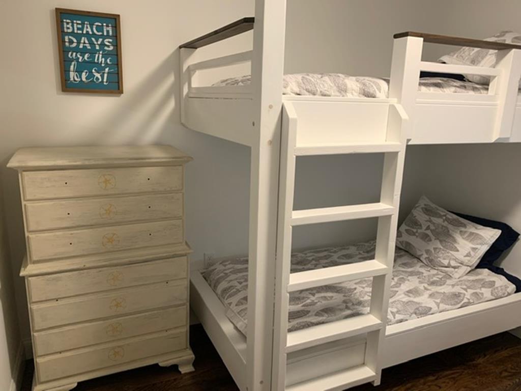 Beautifully appointed newer constructed home close to the beach including a rooftop deck providing gorgeous bay and sunset views. 8 Beach badges,4 beach chairs, 4 bikes and umbrella provided by owner, but not guaranteed. Non-reverse living. All the bedrooms are on the second floor. There is a primary suite and a junior suite, both with private bathrooms and both have queen beds. The bunk room sleeps 4 and the twin room sleeps two. There is a full hall bath on the second floor.